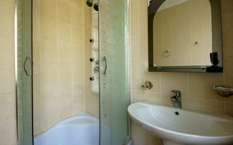 В номере: туалет, умывальник, ванная или душ, кондиционер, 2 кровати, диван, тумбочки, 2 стула, шкаф, телевизор, холодильник.