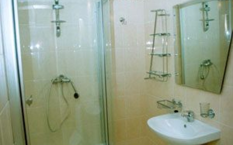 В номере: коридор, туалет, умывальник, душ, кондиционер, 2 односпальные кровати, 2 тумбочки, 2 стула, шкаф, телевизор, холодильник, лоджия 7 кв.м, на лоджии – 1 или 2 дополнительные кровати.