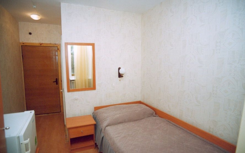 В номере: туалет, умывальник, душ, односпальная кровать, тумбочка, стул, шкаф, телевизор, холодильник.